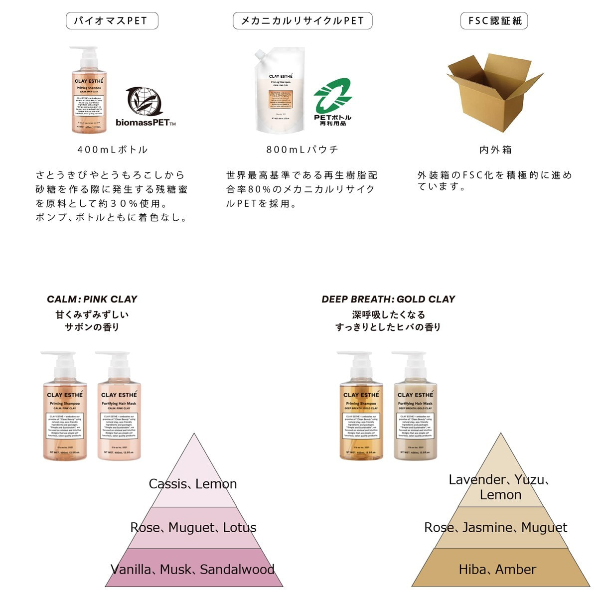ゴールドクレイは、深呼吸したくなるすっきりとしたヒバの香り。