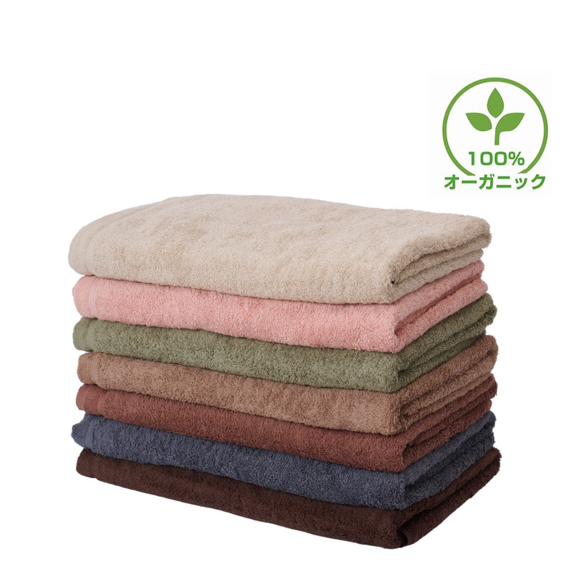 バスタオルMより一回り大判サイズの100%オーガニックコットン素材。バスタオルとタオルケットの中間サイズで様々な用途にお使いいただけます。