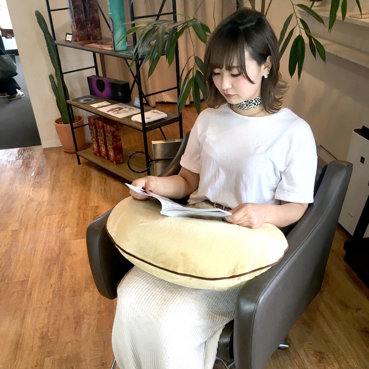 微粒子のマイクロビーズが入った、ふんわりソフトなクッションです。
