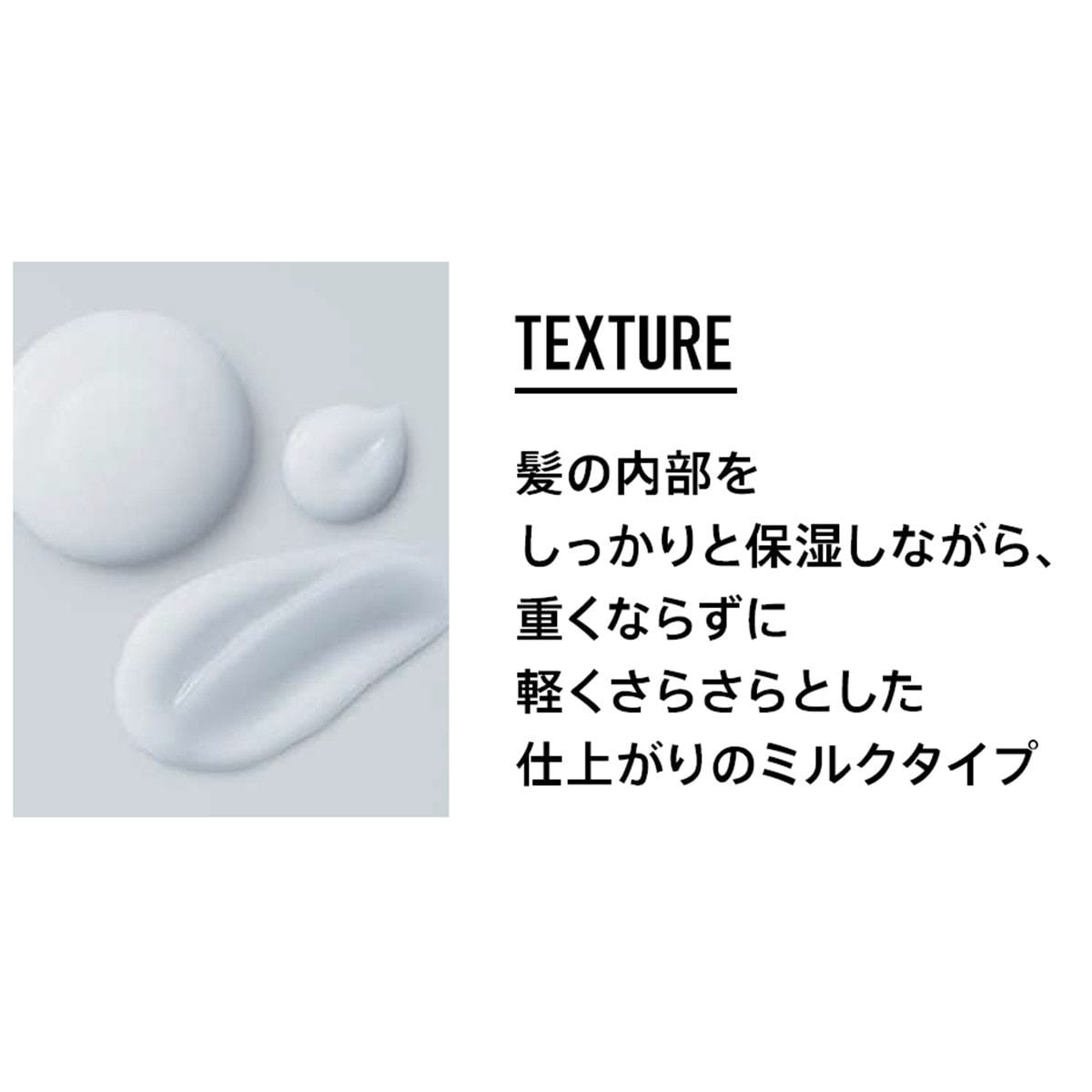 ブリーチ・ハイトーン毛用の処方設計で、うるおってまとまり、指どおりのよい仕上がり。その後のスタイリングも自由自在。
