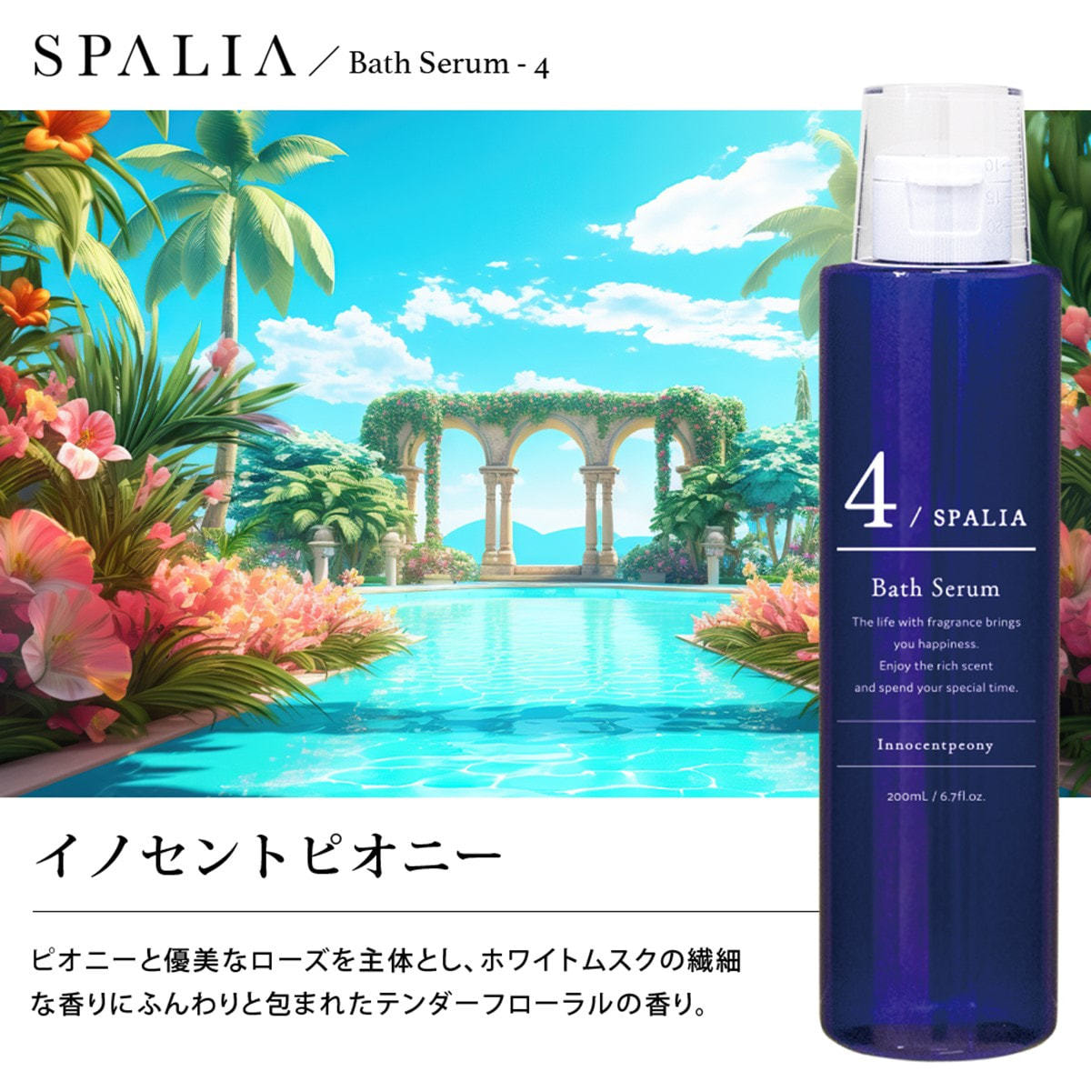 商品名:スパリア バスセラム ④イノセントピオニー 200ml(バスオイル)