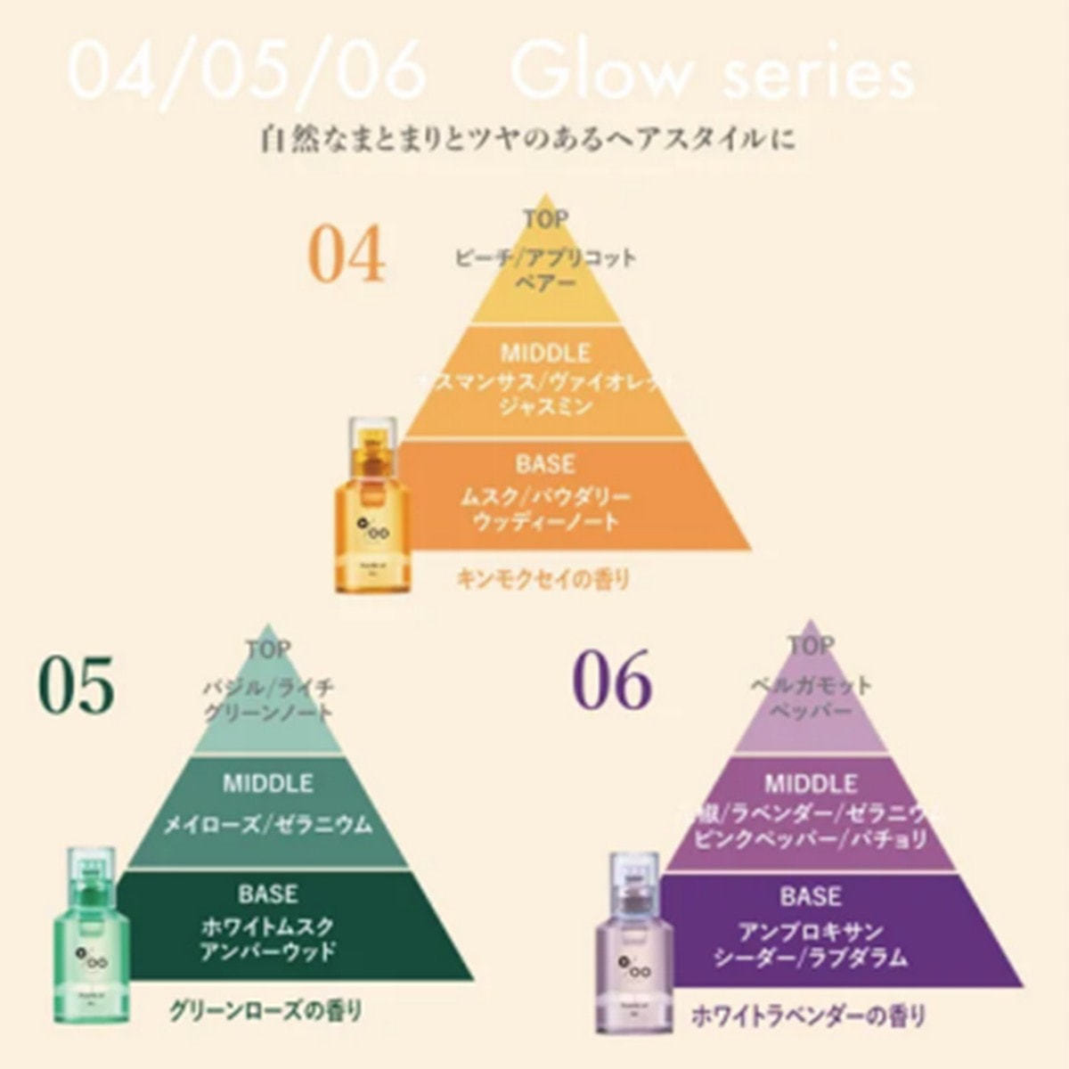 質感:Glow(自然なまとまりとツヤのあるヘアスタイルに)